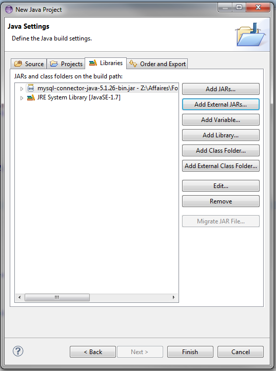Sélectionnez mysql-connector-java-5.1.26-bin.jar que vous avez bien rangé.