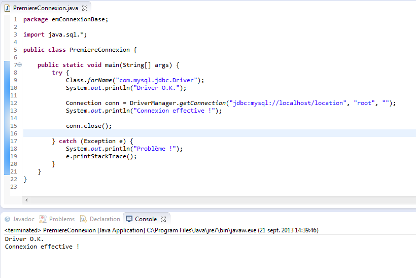 Créer une classe "PremiereConnexion" dans ce package avec un "main".