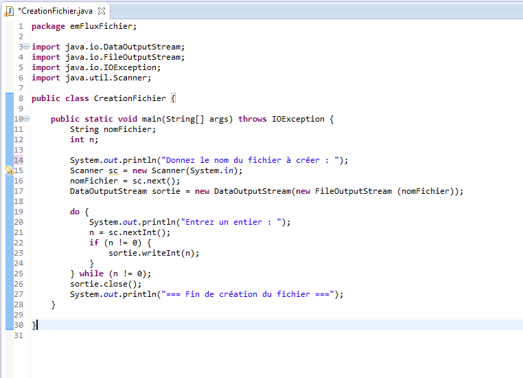 On enregistre dans un fichier binaire des entiers (int) fournis par l'utilisateur.