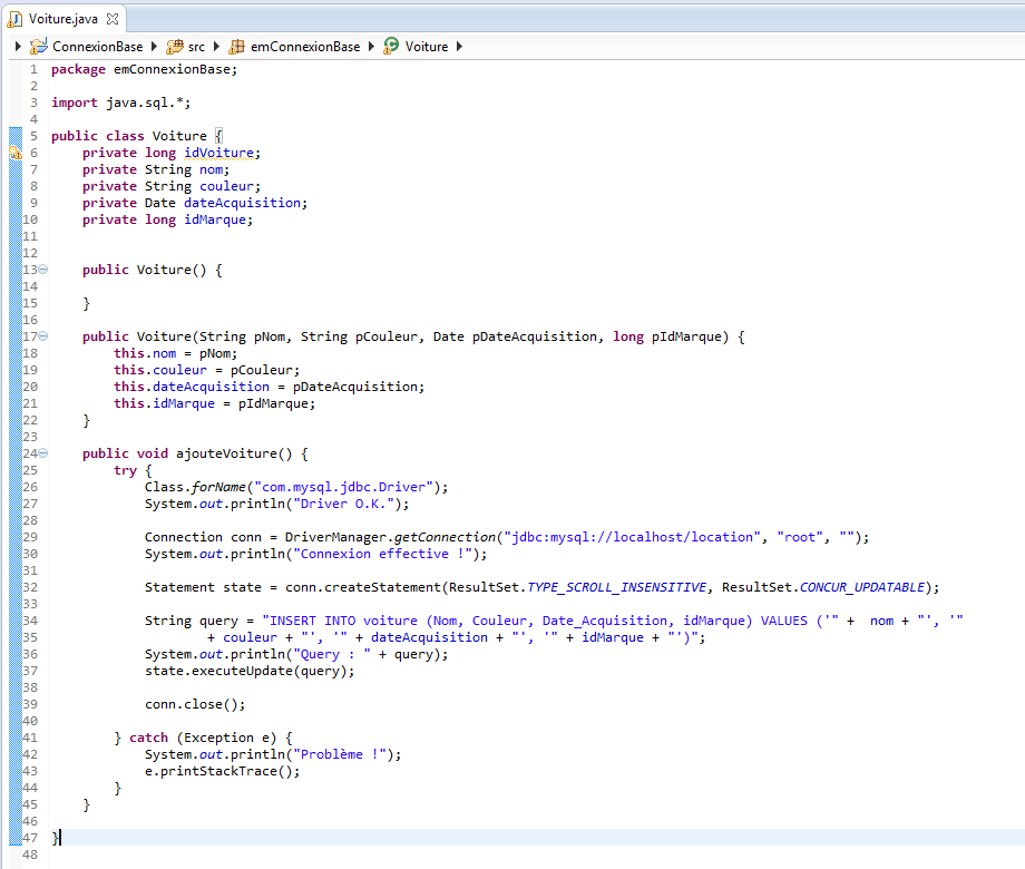 Faire une classe voiture qui permet d'ajouter une voiture.