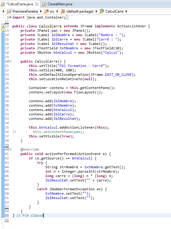JTextField : Calcul carré.
