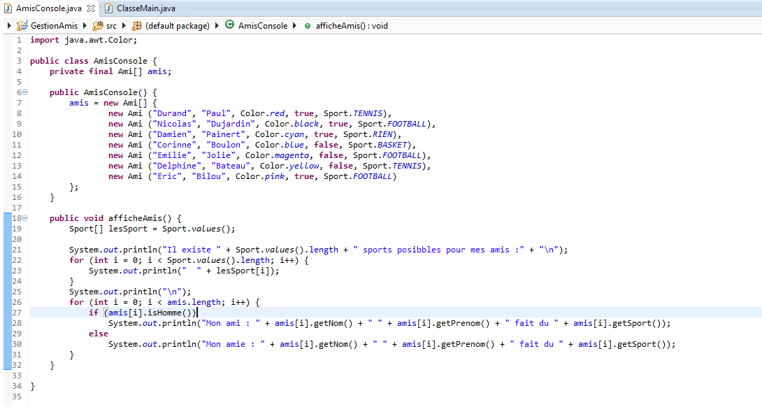On reprend notre projet GestionAmi et sa classe ConsoleAmi :