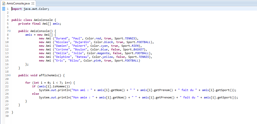 {"Corinne", "Boulon", Color.blue, false, Sport.BASKET},