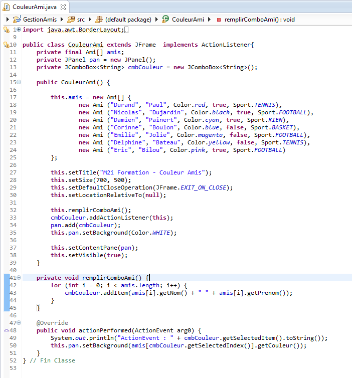 On remplit la JComboBox dans une méthode.