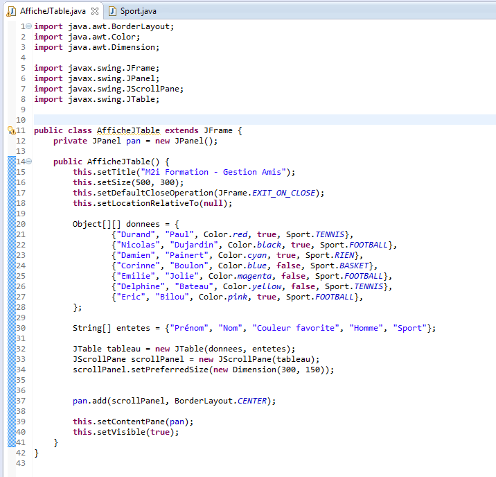 On reprend notre classe "Ami" et notre énumération "Sport".