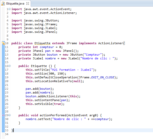 Faire un programme qui compte le nombre de clic d'un bouton.
