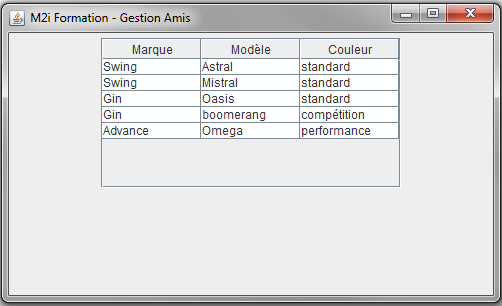 Un JTable ne contient pas ses données mais les obtient à partir d'un tableau d'objets à 2 dimensions, ou à partir d'un modèle de données.