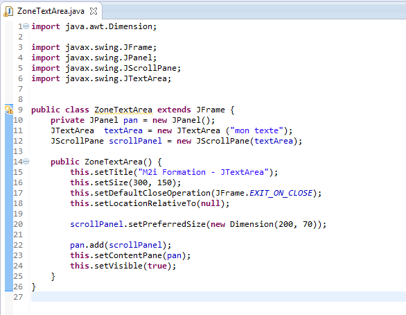 Dans cet exemple on va coupler notre JTextArea avec un JScrollPane.
