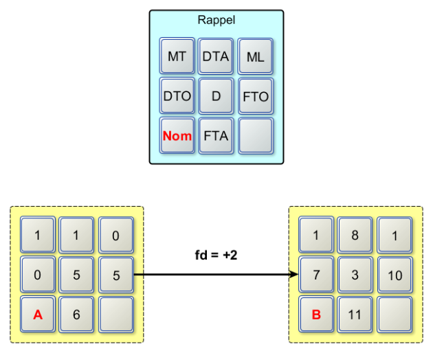 Cas où la liaison fd=+2. Appelons fd le délai entre la fin de A et le début de B.