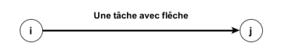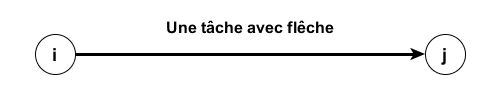 Dans cette représentation, l'arc, de type vecteur, est orienté : le point de départ de l'arc représente le début de la tâche (ici à gauche), son extrémité flèchée représentant l'étape fin de la tâche (celle de droite).