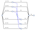 Ce regroupement des fins de tâches effectué, il ne reste alors plus qu'à contraindre chaque début de test des lots 4 à 6 par cet état intermédiaire pour que notre réseau soit complet.
